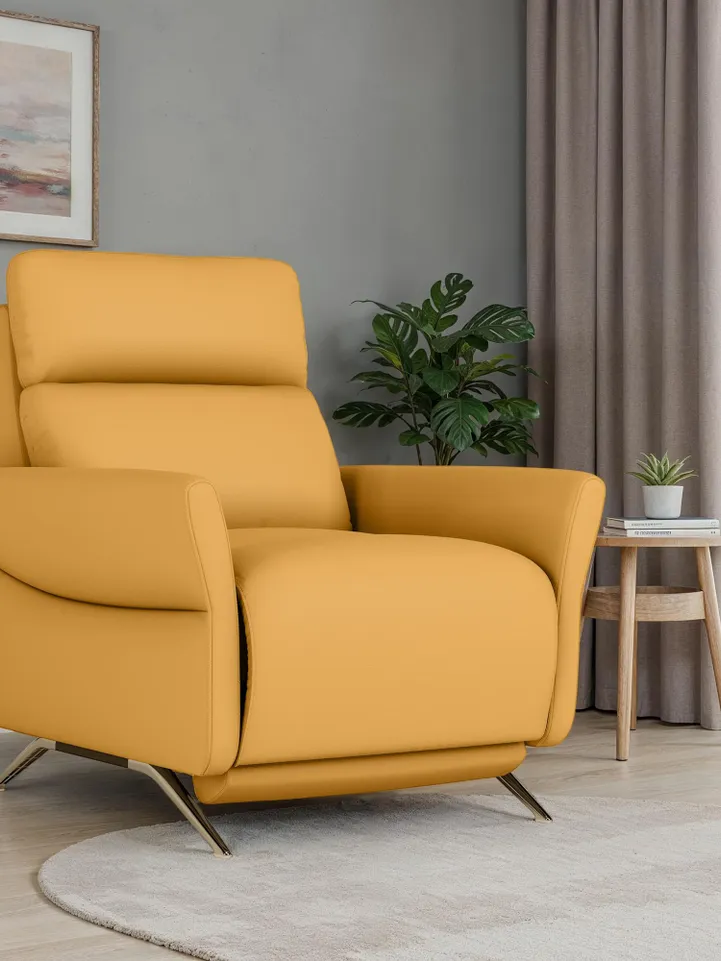 With its intuitive reclining mechanism, Yana is crafted for moments of ease - whether you’re winding down after a long day or entertaining in refined style. Deeply cushioned seats, a supportive backrest, and subtly padded arms deliver an indulgent seating experience, making it a standout living room sofa for those who value design and comfort in equal measure.